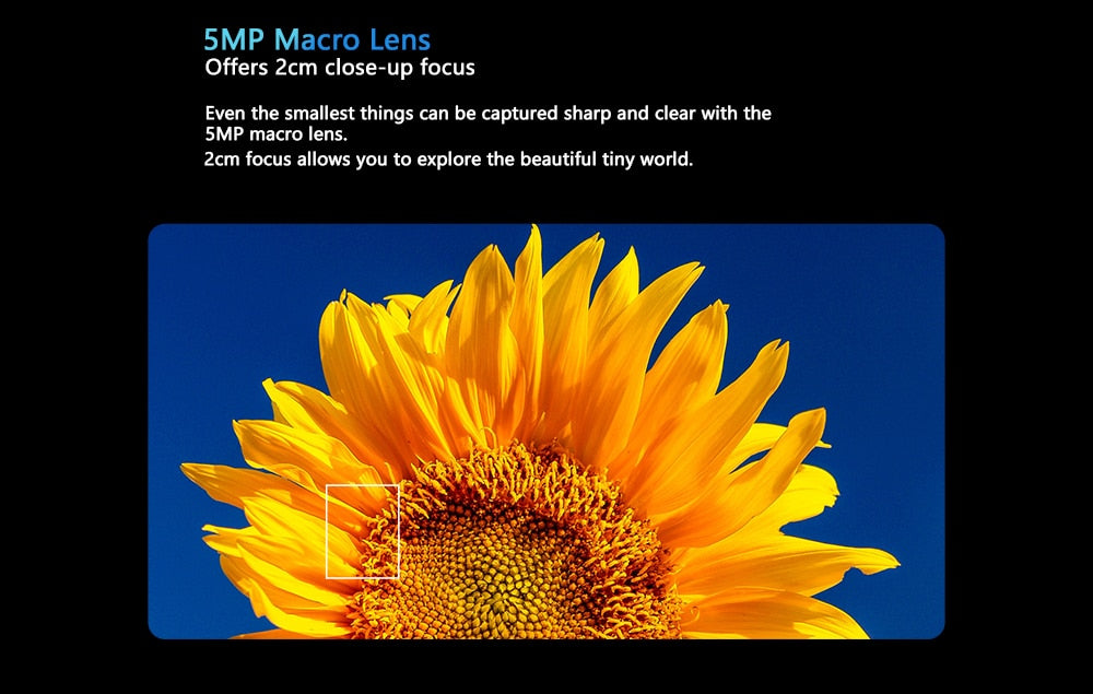 Mesmo as coisas menores podem ser capturadas nítidas e claras com a lente macro de 5mp.