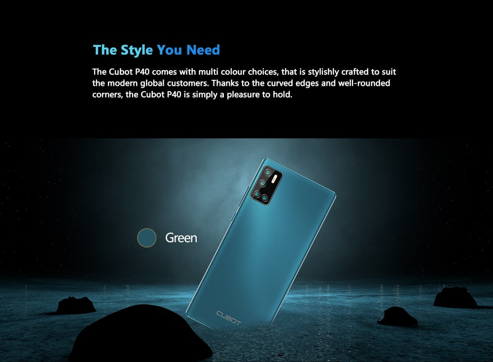 O cubot p40 vem com escolhas de multi cores, que é elegantemente trabalhada para serir os clientes globais modernos. graças às bordas curvas e cantos bem arredondados, o cubot p40 é simplesmente um prazer de segurar.