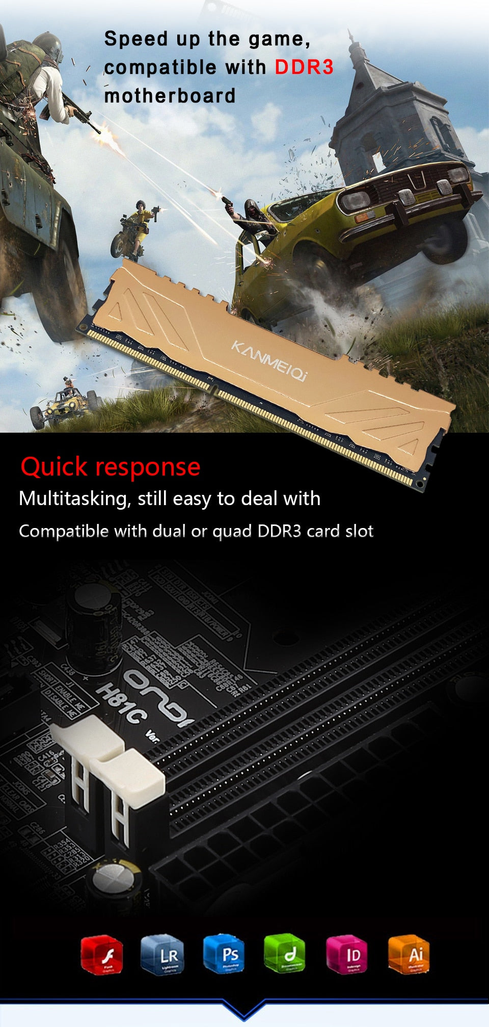 1. a memória: ddr3 4gb 8gb pode compatível com toda a placa-mãe. 2. três anos de garantia 3. marca nova com caixa 4. fábrica totalmente testado com qualidade estável 5. em estoque para a entrega rápida certifique-se 6. frete grátis (com o número da faixa) Nota: nós mostramos a foto da cor dos produtos, imagens apenas para referência, sujeito aos nossos produtos disponíveis.