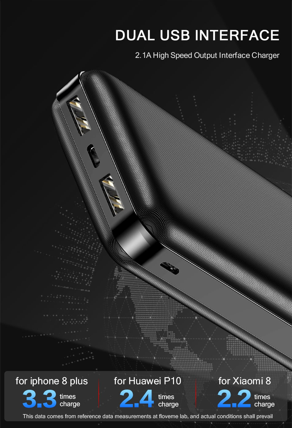 A razão mais importante é a taxa de conversão. Porque a maioria da tensão da bateria do power bank é 3.7 v, e o banco de potência precisa aumentar a tensão para 5 v ao carregar o telefone celular, que fazem a eficiência de conversão do banco de potência apenas 3.75/5 = 74%, também incluem o calor gerado quando o aumento da tensão da bateria, e vários do consumo de fio, eletricidade e auto-consumo. Estes pontos somam 30%-40% da potência da fonte de energia móvel. assim, o banco de potência 20,000 mah pode realmente ser usado por nós é de cerca de 12400 mah.