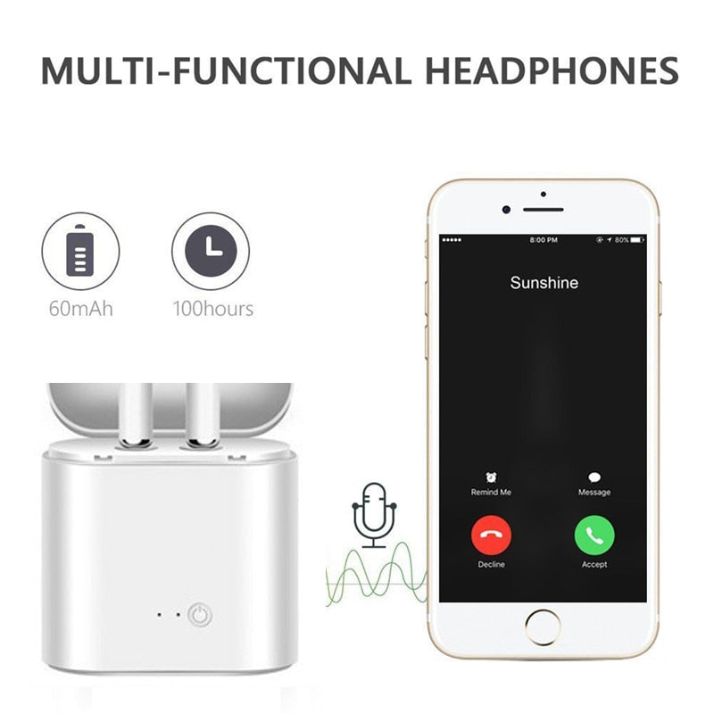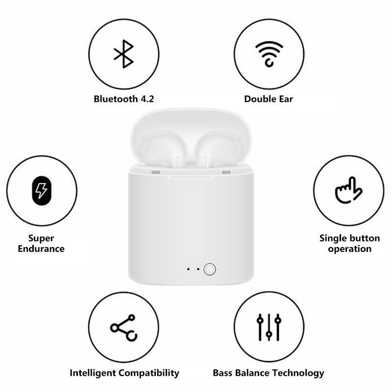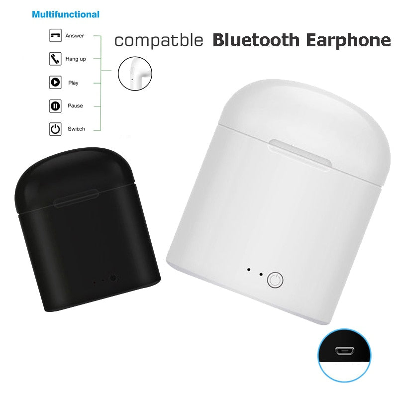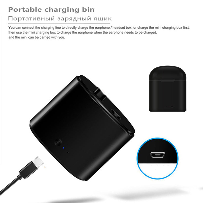 Tws fones de ouvido i7s bluetooth 5.0, fone de ouvido sem fio, portátil, preto/branco, esportivo, com caixa de carregamento