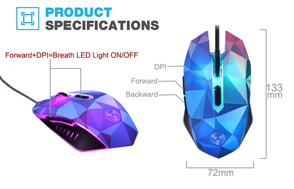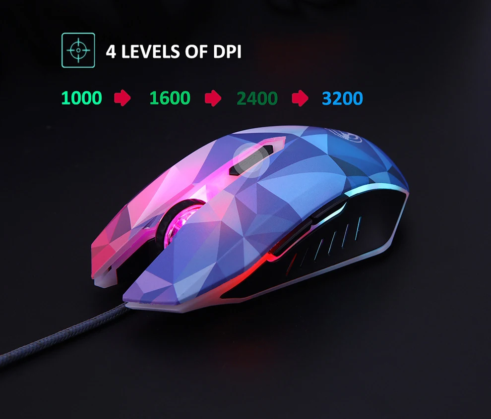 Parâmetros do produto: Tecnologia de conectividade: Com Fios Tamanho do produto: 133*72*41mm Peso: 103 5 5g Número da chave: 6 Resolução: 1000/1200/1600/2400/3200 dpi Ciclos de funcionamento: 1,000,000 ciclos Material: abs + óleo fosco Exigência do sistema: windows 2000 / 2003/me/xp/vista/win7/8 / 10/mac os/linux Características do produto: Atualização de dpi para 3200 dpi, 4 níveis de dpi: 1000 dpi/1600 dpi/2400 dpi/3200 dpi 7 tipos de efeito de luz de respiração colorfu circular, (dicas quentes: não pode definir em uma cor específica); Pressione o botão para frente/para trás + dpi para desligar o design lightergonómico, se encaixa naturalmente em sua mão; 6 botões para produtividade superior e eficiência de usar-apenas plug plug and play.. Nenhum software adicional ou firmware necessário; sistema operacional de suporte: windows 2000/2003/win7/8 /10/vista/me/mac os/linux