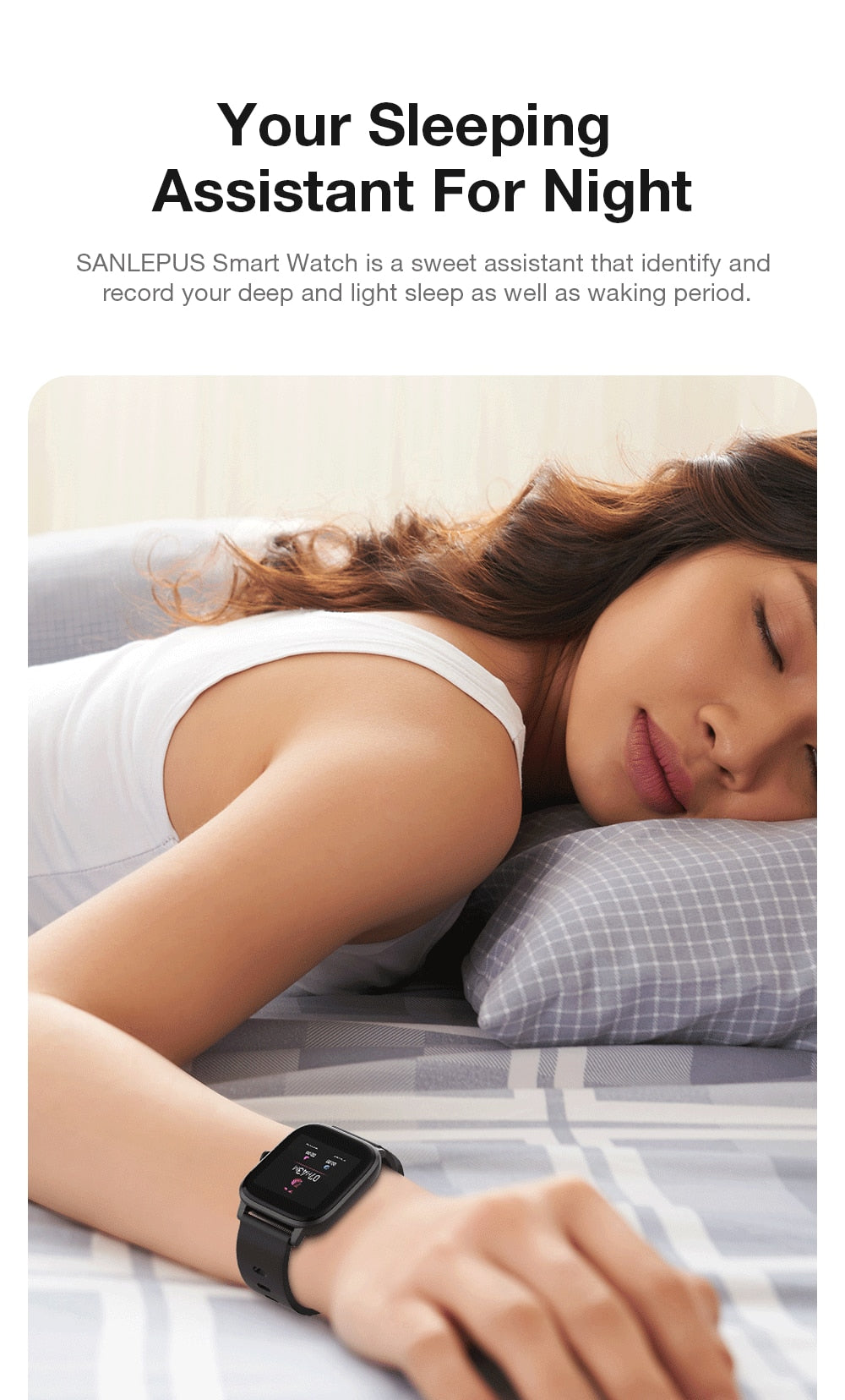 SANLEPUS Relógio Inteligente é um assistente de doce que identificar e registrar o seu o sono profundo e luz bem como acordar período. Melhor Monitoramento Do Sono Através desses registros, o relógio coloca o seu sono sob controle e ajuda você a ajustar a si mesmo para um melhor descanso.